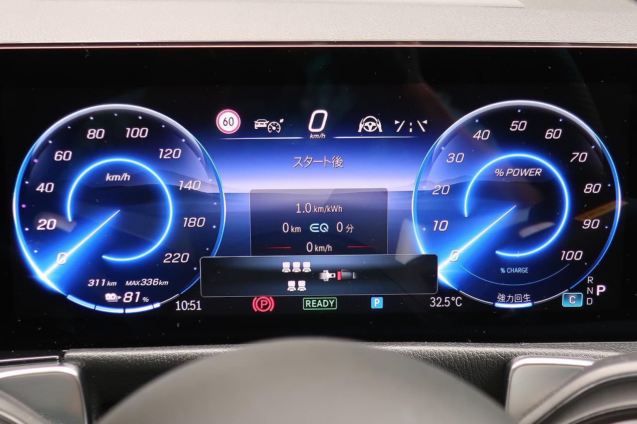 メーターパネルは10.25インチのディスプレイ。左はスピード、右はパワーを表示しているが、中央部を含めてさまざまに表示変更は可能だ。