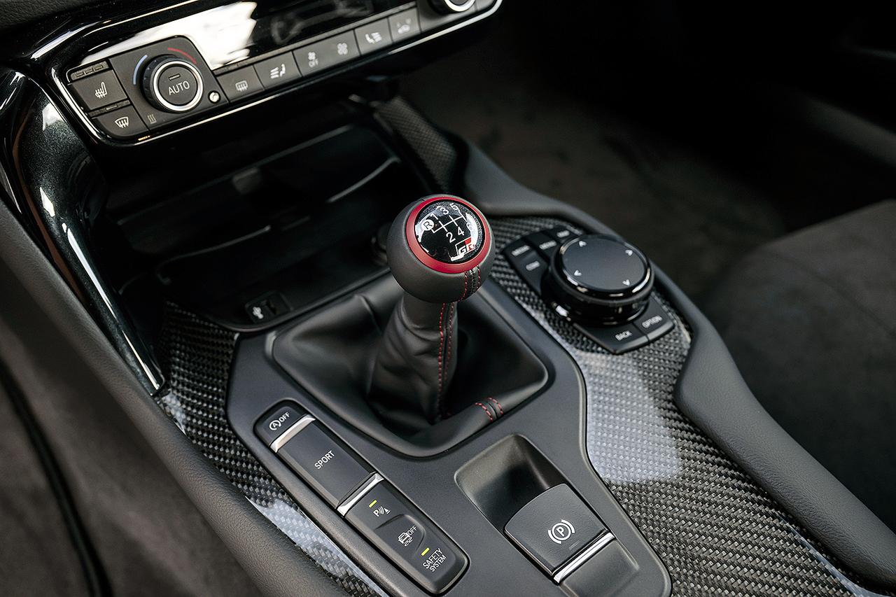 シフトノブやシートベルトには赤いアクセントが用いらている。