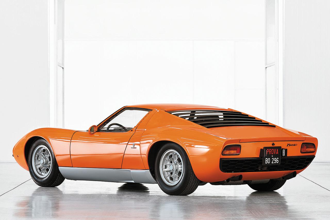優美なデザインの秀逸さが際立つリアビュー。写真のP400では以降のミウラに比べてテールランプが小さいなどの特徴がある。