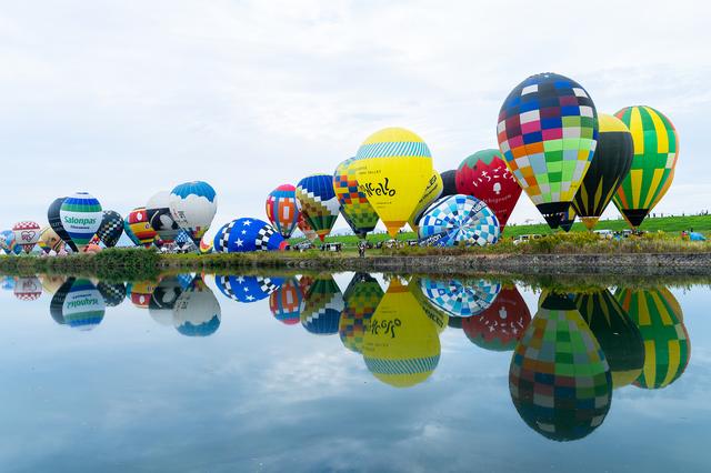 佐賀IBFの見どころは、アジア最大の大会で100機以上の熱気球が空に浮かぶ、圧巻の一斉離陸だが、他にもさまざまな形の熱気球を近くで見ることができるバルーンファンタジアも楽しむことができるところ。
