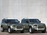 拡大された後輪トレッドと高い車高が後方からも迫力を強調。リアゲート全体に大きく入る“DEFENDER”ロゴがブランドの矜持を示す。