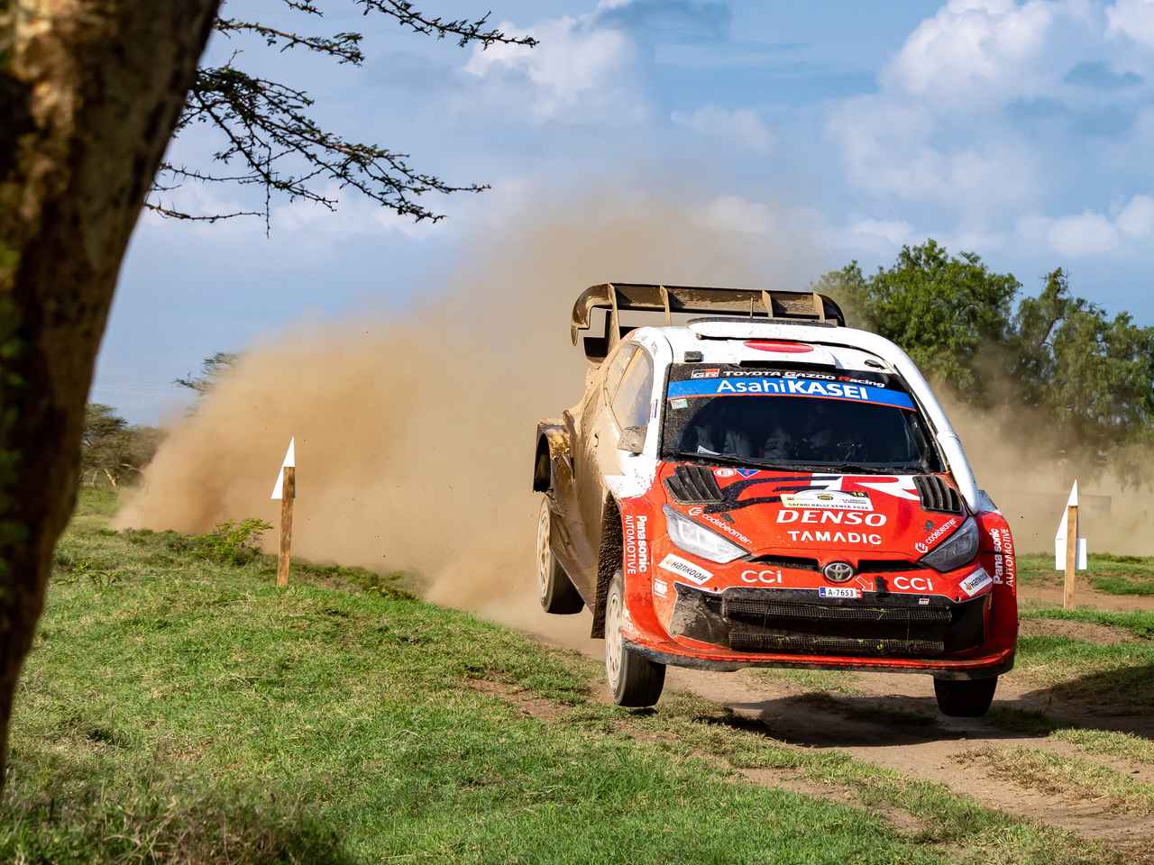ここ数年で最も厳しいコンディションとなったサファリで、まず主導権を握ったのはオリバー・ソルベルグ(トヨタ)だった。木曜夕刻のSS1で2番手スタートという好位置を活かし、視界不良に悩まされたチームメイトのエルフィン・エバンスに30秒、悪化した路面を走ったセバスチャン・オジエに1分9秒の差をつける好スタート。勝田貴元はスタート早々にインターコムのトラブルでペースノートが機能しない状況で1分15秒差の4番手と出遅れた。