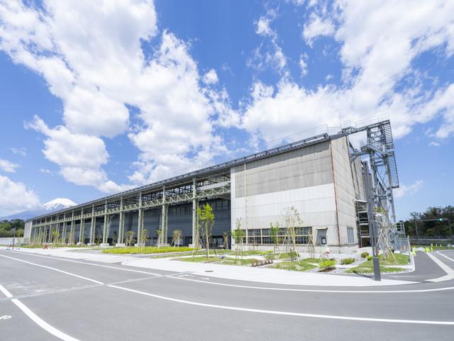 「KAKEZAN 2026」のイベントが開催されたのは、旧トヨタ自動車東日本 東富士工場跡地のインベンター・ガレージ。垂れ幕の上には大型のクレーンが見られ、工場の面影を見ることができる。